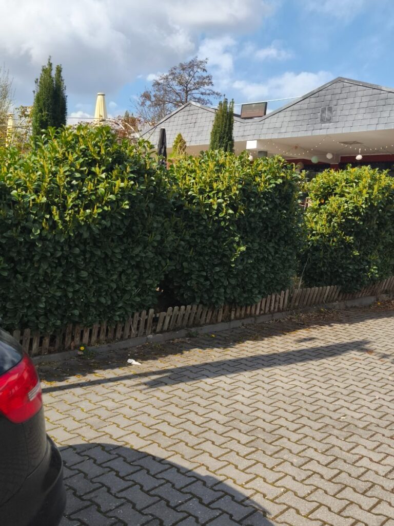 Kirschlorbeer-Hecke, 2m hoch, bildet sofort einen dichten Sichtschutz! Gesund & kräftig gewachsen. Perfekt für Garten & Grundstück. Selbstabholer. Preis: ca. 150-250€ pro Laufmeter (je nach Dichte). Langsam wachsende Sorte